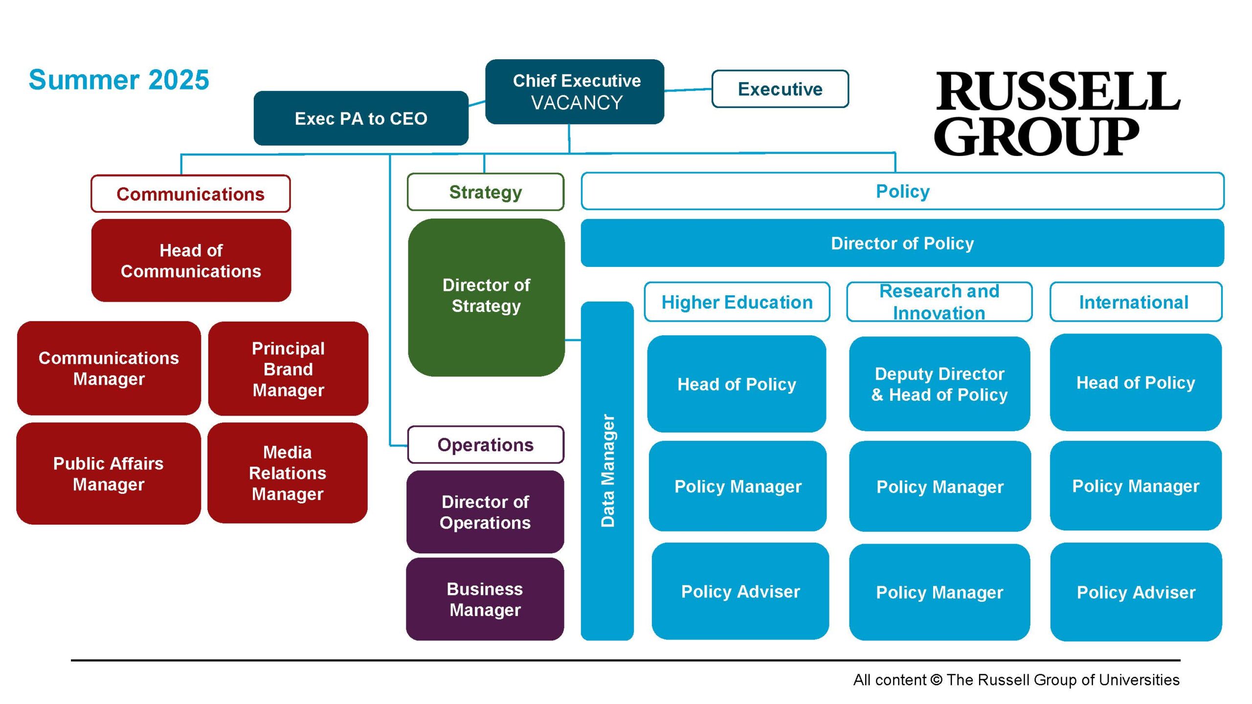 You will lead a talented and dedicated staff team, whose expertise underpins the Russell Group’s reputation for high-quality policy work and advocacy. Valuing, supporting and empowering this team will be an important part of your success in the role.